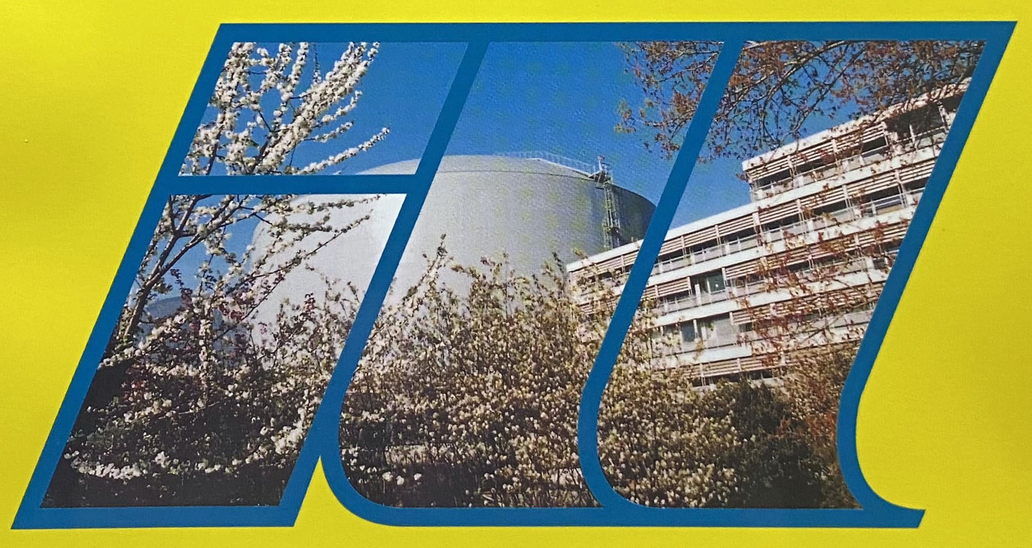Bien qu'il ne porte pas le logo de l'ILL, il est difficile de résister au plaisir d'ajouter ici une photo du Pin's de l'ILL. édité en 1994 pour célébrer le redémarrage du réacteur après le remplacement de son bidon.
