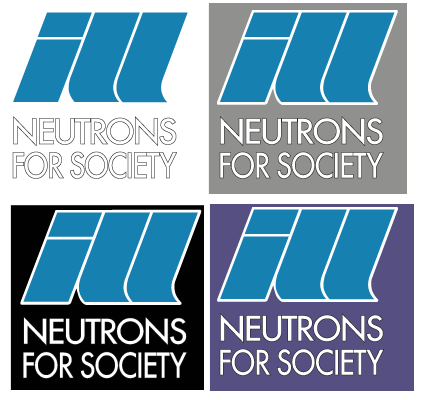 Selon Herma Buttner c'est vers 1998 qu'un logo doté de la mention "Neutrons for Science" apparaît pour la première fois, mais c'est sans doute début 2000 que l'ILL définit une charte graphique officielle comportant une couleur de référence (Pantone 313C) qualifiée de "bleu ILL", des gabarits pour les présentations PowerPoint, une image d'en-tête et qu'un logo comportant cette mention est décliné en plusieurs versions pour s'adapter au fond du document. Comme on peut le voir, cette couleur "officielle" s'est souvent perdue au gré des utilisations.