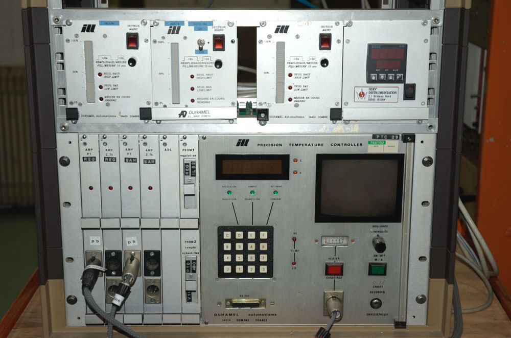 Les rapports annuels de l'ILL montrent que le matériel industriel des années 70 s'est avéré très décevant. Une fois de plus, l'ILL a dû innover en créant son propre dispositif de mesure et de contrôle dont la réussite a beaucoup contribué au succès de l'environnement échantillon et à la qualité des expériences qui en dépendent.