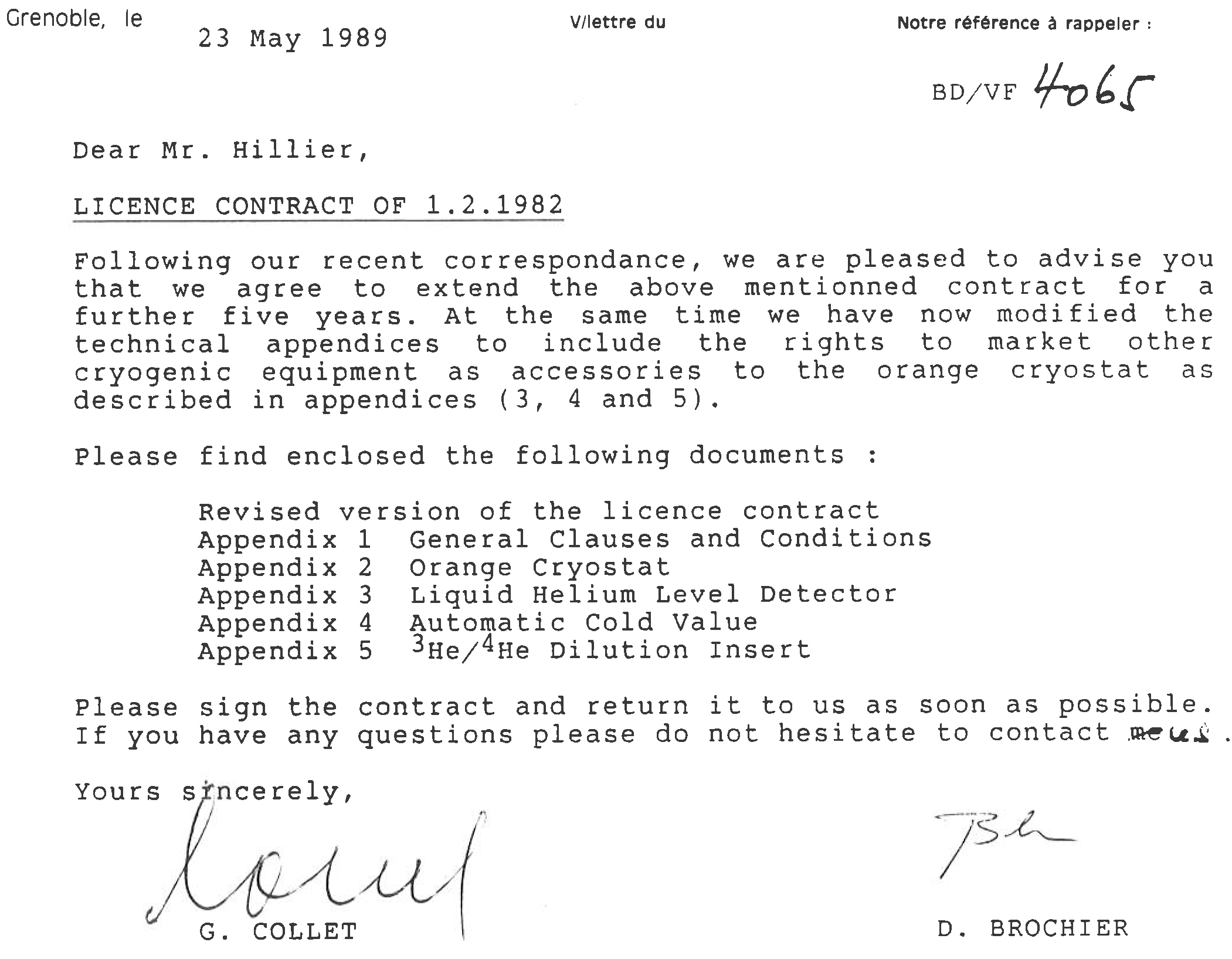 Mais, pendant 10 ans, l'ILL a oublié de réclamer son dû. C'est finalement Gerhard Collet (chef du service finances et achats) qui s'en est aperçu et AS Scientific a donc donné quelques cryostats à l'ILL en dédommagement.