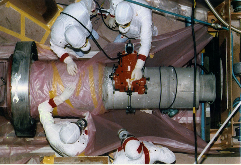 - au fait que le personnel de l’INB (physiciens et exploitants du réacteur) était directement concerné par le résultat. Ceci entraîna la paix sociale même si la découpe de la première manchette (opération irréversible) entraîna une forte opposition de la part des physiciens qui retardèrent l’opération. Ils craignaient "une manœuvre" pour justifier ensuite le démantèlement de l’INB.