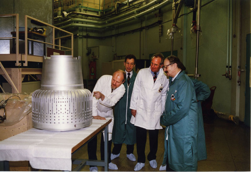 - la firme allemande Zeppelin fut en charge de la construction du nouveau bidon réflecteur à partir des demi-produits commandés très tôt par l’ILL.