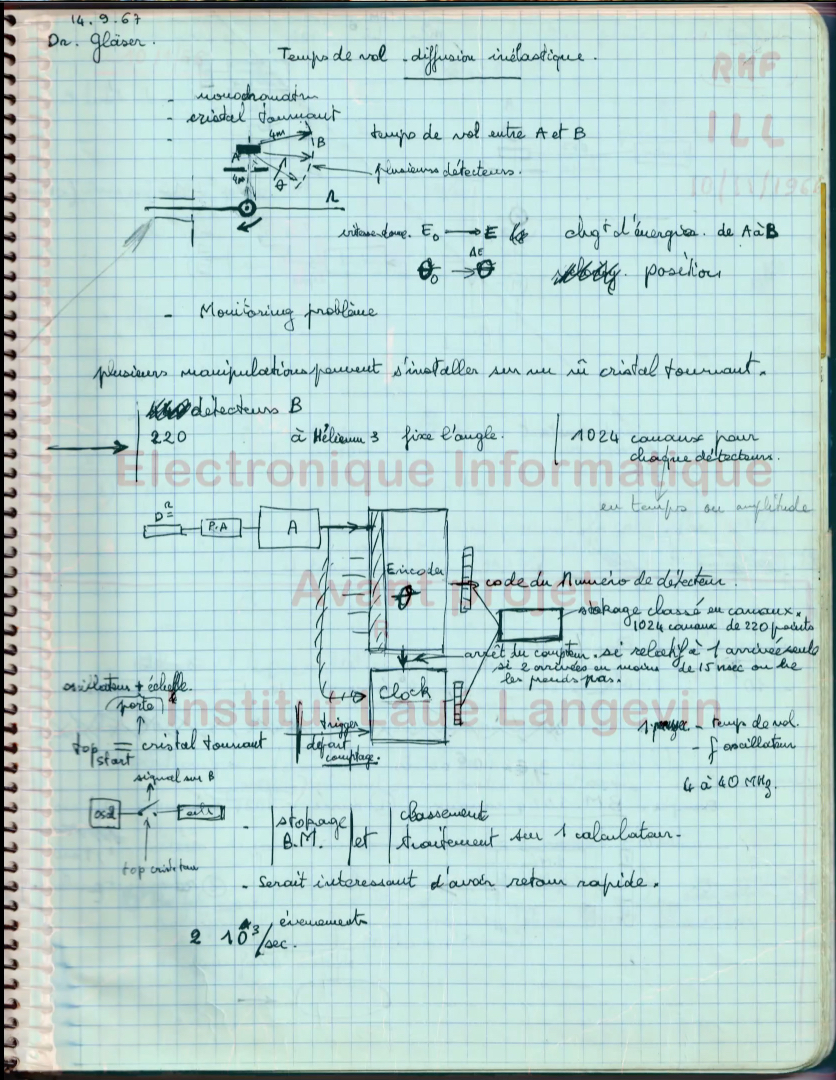 Le CEA-CENG disposait d'un Laboratoire d'Electronique dirigé par Cordelle et dont j'étais le sous-directeur. Pour l'ouvrir au monde industriel nous venions de le transformer en CEA-LETI, en 1967, quand le professeur Maier-Leibnitz, directeur de l'ILL, et Bernard Jacrot, directeur adjoint, me proposent de prendre la responsabilité de leur service électronique. J'ai poliment décliné car j'étais trop impliqué dans l'aventure LETI mais j'ai proposé qu'ils lui confient la conception et réalisation des équipements électroniques ainsi que l'informatique de l'ILL, et cela retint leur attention.