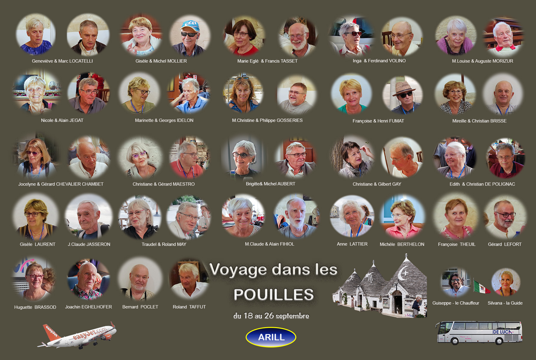 Les comptes pour le voyage dans les Pouilles viennent juste d'être réglés avec les derniers remboursements de Carpe Diem. Pour mémoire, il y a eu en 8 mois environ (délai entre la réservation et le voyage à l'étranger) 5 désistements pour raisons justifiées de santé.