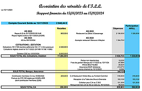 Voici le point de l'association à ce jour ainsi que le bilan de l'exercice passé.