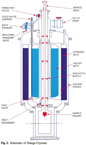 - 1976: "The 1.5 to 300 K variable temperature cryostat, with access to the sample from above, lightweight, compact and with a very long holding time"