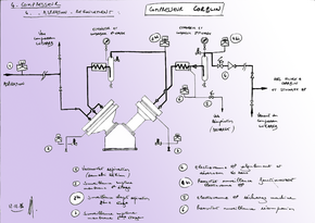 Dès le départ, le dispositif comportait un système de compression du gaz pour permettre son transport au CENG. Selon Dominique Brochier, c'est lui-même qui a calculé les compresseurs mais c'est Gabriel Prati qui a fait le reste car il connaissait bien les problèmes de perte de charge. Les tuyaux sont en cuivre. Pourquoi ? Brochier a hésité entre plastique et cuivre mais un ami plombier lui a dit "Mets du cuivre !" alors il a mis du cuivre.