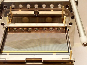 Pierre Palleau avait conçu le boitier et je me suis débrouillé pour y faire entrer la plaque microstrip et toutes les tripes du détecteur (électrodes d’homogénéisation du champ électrique sur les bords, connections, etc). Le dégazage à 150°C et le remplissage d’un détecteur prenait environ 3 à 4 semaines.