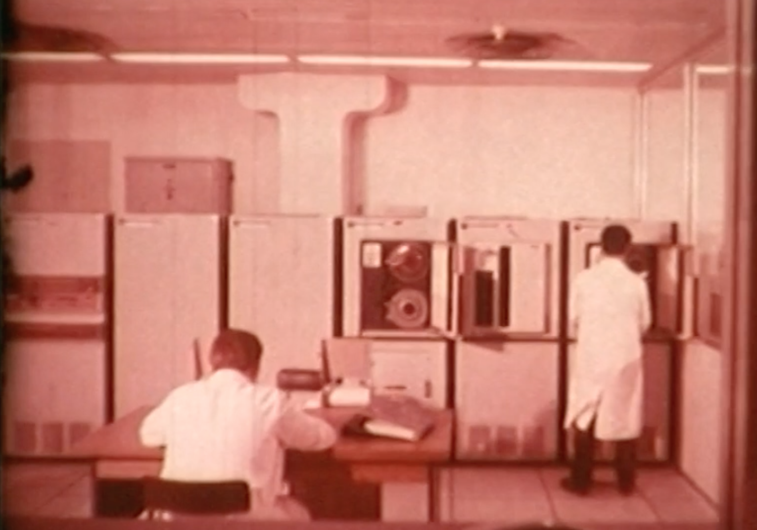 A l'époque du démarrage du réacteur (1971) les instruments scientifiques pilotés par ordinateur étaient encore rares. Il s'agissait souvent de mini-ordinateurs DEC PDP-8 qu'on programmait directement en binaire ou en langage assembleur. L'ILL a choisi une autre voie mais les documents photo qui le montrent sont rares.