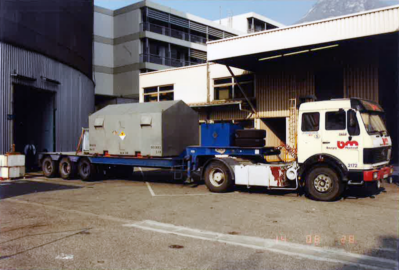 Un jour, le camion est arrivé à l’ILL avec un retard de 3 à 4 heures, décoré de plants de maïs et de terre. Dans la nuit, vers Baume-les-Dames/Besançon, le chauffeur s'était sans doute endormi et avait perdu le contrôle du véhicule. Le camion avait "quitté" l’autoroute, traversé un champ de maïs et s’était retrouvé miraculeusement presque sans dégâts sur un chemin en contre-bas. Heureusement, l’élément combustible était resté intact !!