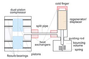 Les dispositifs simple étage des débuts atteignaient 45 K et les double étage 9-10 K. Ils étaient très séduisants car leur mise en service était ultra simple : on branche le courant électrique et ça marche. Pour les scientifiques cela annoncait la fin des pénibles transferts d'azote liquide et d'hélium liquide à des heures trop souvent indues (les mesures fiables de niveau et de consommation d'hélium sont venues plus tard).