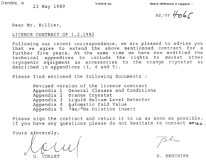 Mais, pendant 10 ans, l'ILL a oublié de réclamer son dû. C'est finalement Gerhard Collet (chef du service finances et achats) qui s'en est aperçu et AS Scientific a donc donné quelques cryostats à l'ILL en dédommagement.