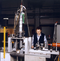 NDT était un instrument de topographie par diffraction des neutrons qui permettait d'imager les défauts ou déformations du réseau cristallin des échantillons [1]. Le scintillateur plaqué contre un film Kodak Periapical Haute Definition était une feuille de gadolinium de 25 μm d'épaisseur. Les résultats ont été excellents mais, au démarrage de l'ESRF, son responsable est parti y développer la très prometteuse imagerie aux rayonnement synchrotron.