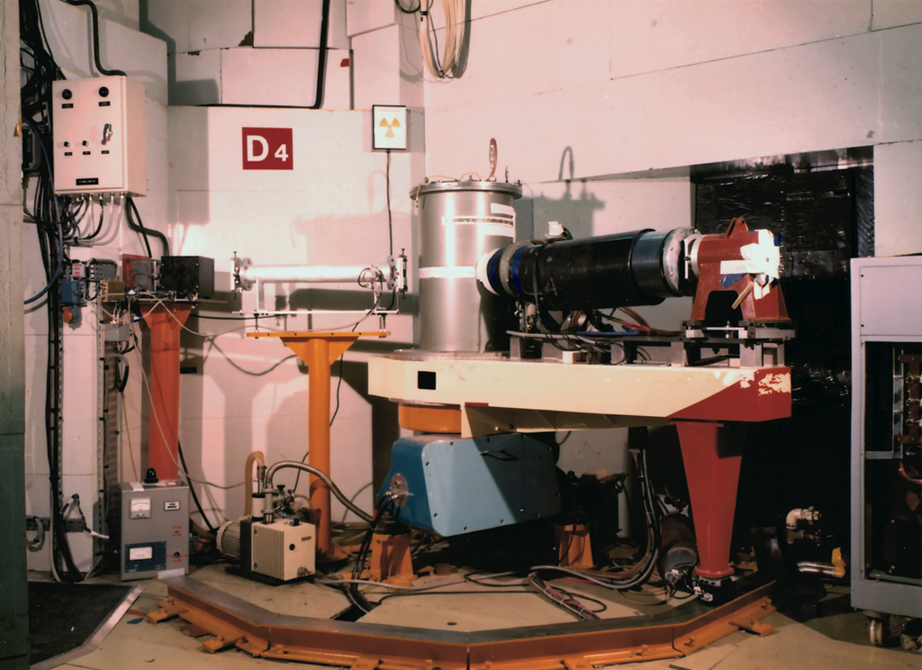 D4 a été construit en 1973 par Hans Egger sur le canal de neutrons chauds H8. Il était doté à l'époque d'un monodétecteur 3He [1] et Pierre Chieux se souvient qu'il avait une pression de 2-3 bars mais était assez long afin d'assurer une détection efficace des neutrons chauds. Cet instrument a ensuite connu deux évolutions majeures, D4B et D4C, portant sur l'amélioration de son efficacité de détection.