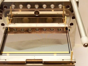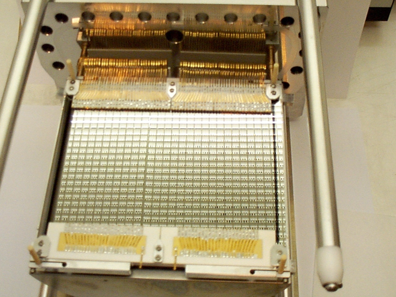 Pierre Palleau avait conçu le boitier et je me suis débrouillé pour y faire entrer la plaque microstrip et toutes les tripes du détecteur (électrodes d’homogénéisation du champ électrique sur les bords, connections, etc). Le dégazage à 150°C et le remplissage d’un détecteur prenait environ 3 à 4 semaines.