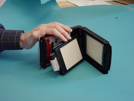 Pour gagner en vitesse, une première astuce aura été de détourner des appareils de photo dits "à développement instantané" des années 70, les fameux Polaroïd très en vogue à l'époque. On y gagnait effectivement beaucoup en vitesse mais au prix d'une faible sensibilité et d'une moindre qualité d'image, toutefois cela convenait parfaitement pour la localisation de l'échantillon dans le faisceau incident. Tous les instruments de l'ILL ont utilisé ce type d'appareil tant que les films Polaroïd ont été disponibles; ils sont maintenant remplacés par de petites caméras CCD équipées de convertisseurs qui fournissent une image en temps réel.