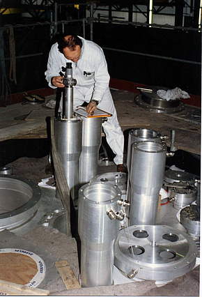 - la firme allemande Zeppelin fut en charge de la construction du nouveau bidon réflecteur à partir des demi-produits commandés très tôt par l’ILL.